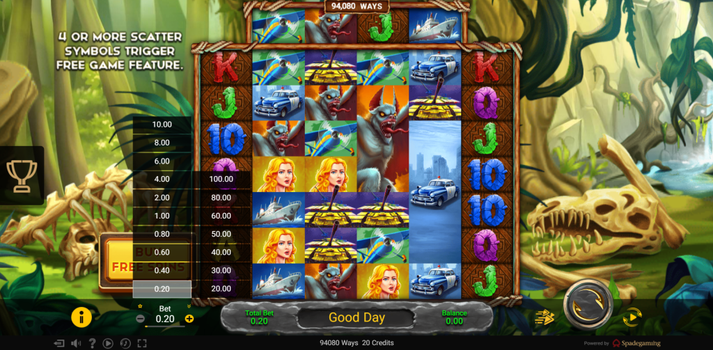An example of a multi way-to-win payline slot in Spadegaming, Legacy of Kong